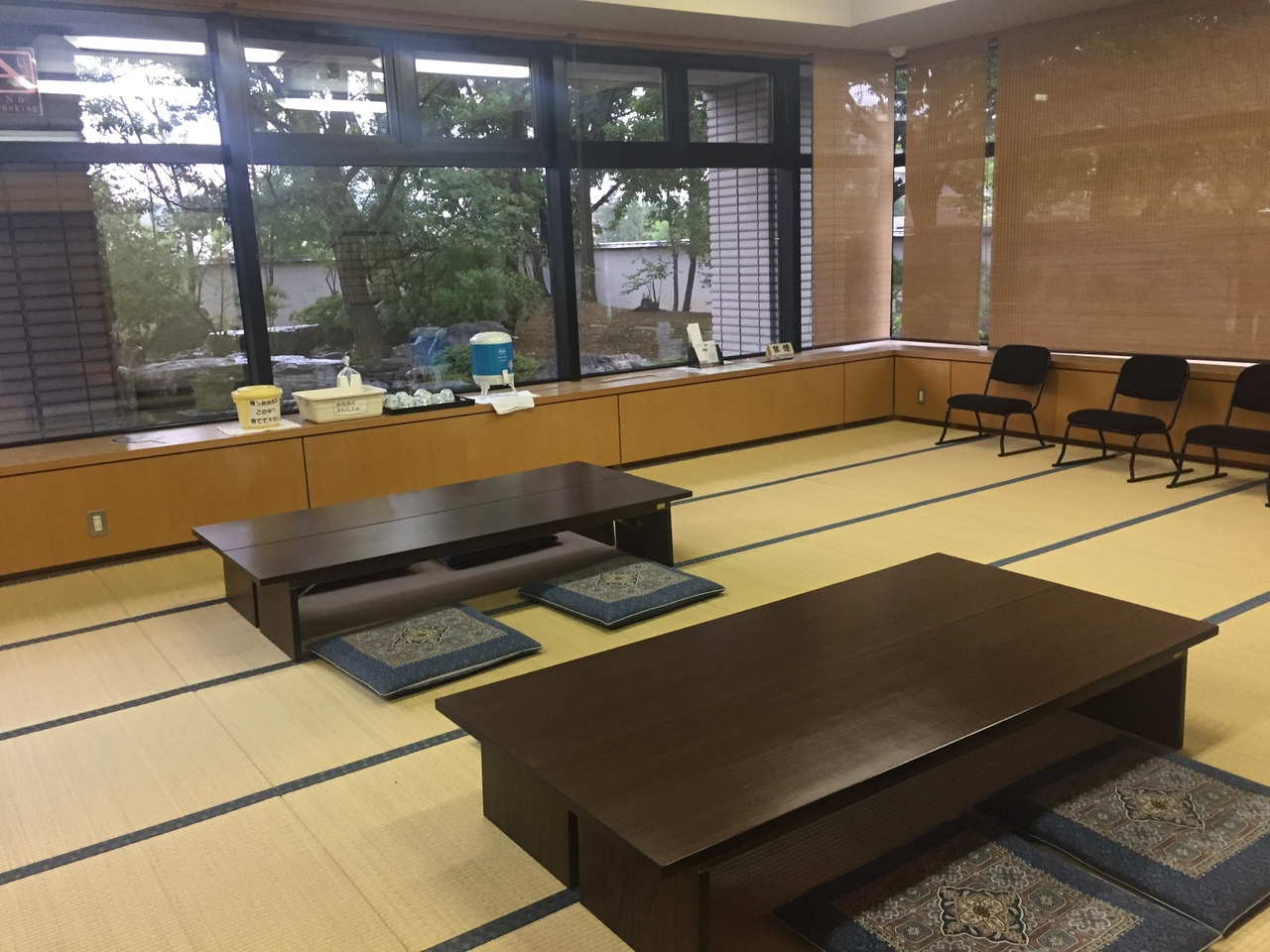 和室を解放し 長机 座布団 そして麦茶まで置いてくれている。