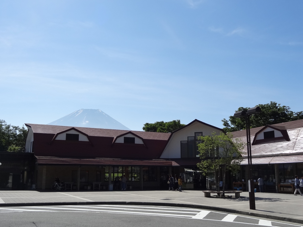 富士五湖の写真撮影に出かけた先で、トイレ休憩のために立ち寄った道の駅です。駐車場からは建物越しに富士山がくっきり見えました。今日は何かいいことありそうな予感が。朝霧高原で採れたきのこや野菜などが建物前の通路に並んでいます。建物の中に入ると、充実したお土産コーナーや食事処があります。富士山の景色だけでなくグルメも揃った、絶対おススメの道の駅です。