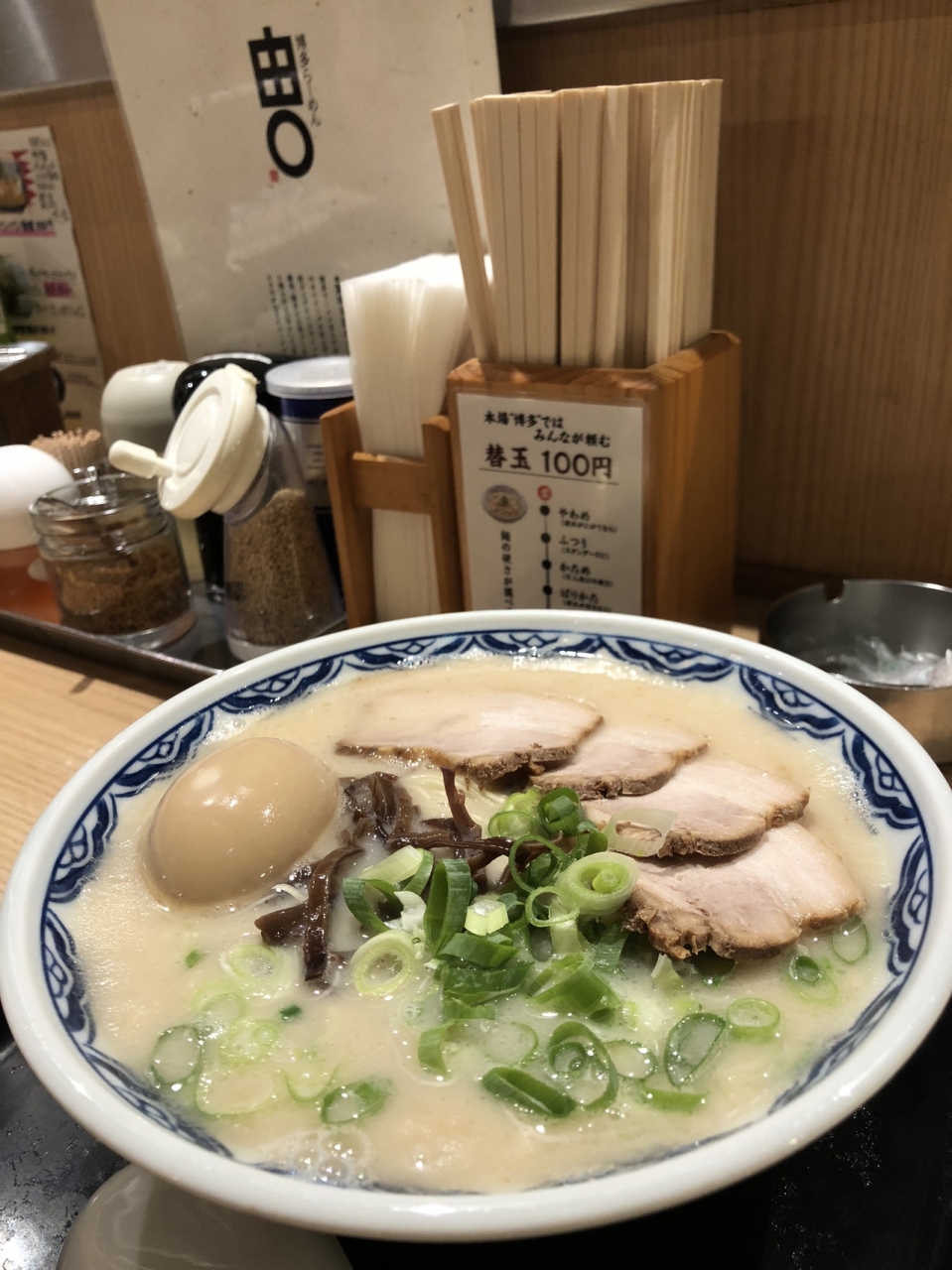 品川駅の港南口にあるラーメン屋さんで、雑居ビルの2階にあります。クセのない豚骨スープで細麺のラーメンで、トッピングが色々とあります。品川で飲んで二次会とか三次会とかに使うのも良いでしょう。おつまみも多くお酒も提供されます。