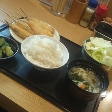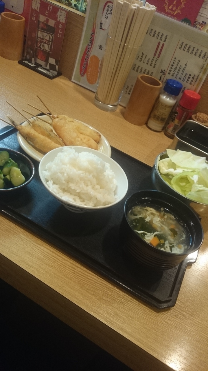 平日のランチで利用しました。ビルの奥に入っているあまり大きくないお店です。串カツ5本とキャベツ、ご飯、お味噌汁、お漬け物がついてきて500円はお得だと思います。また機会があったら利用したいと思います。
