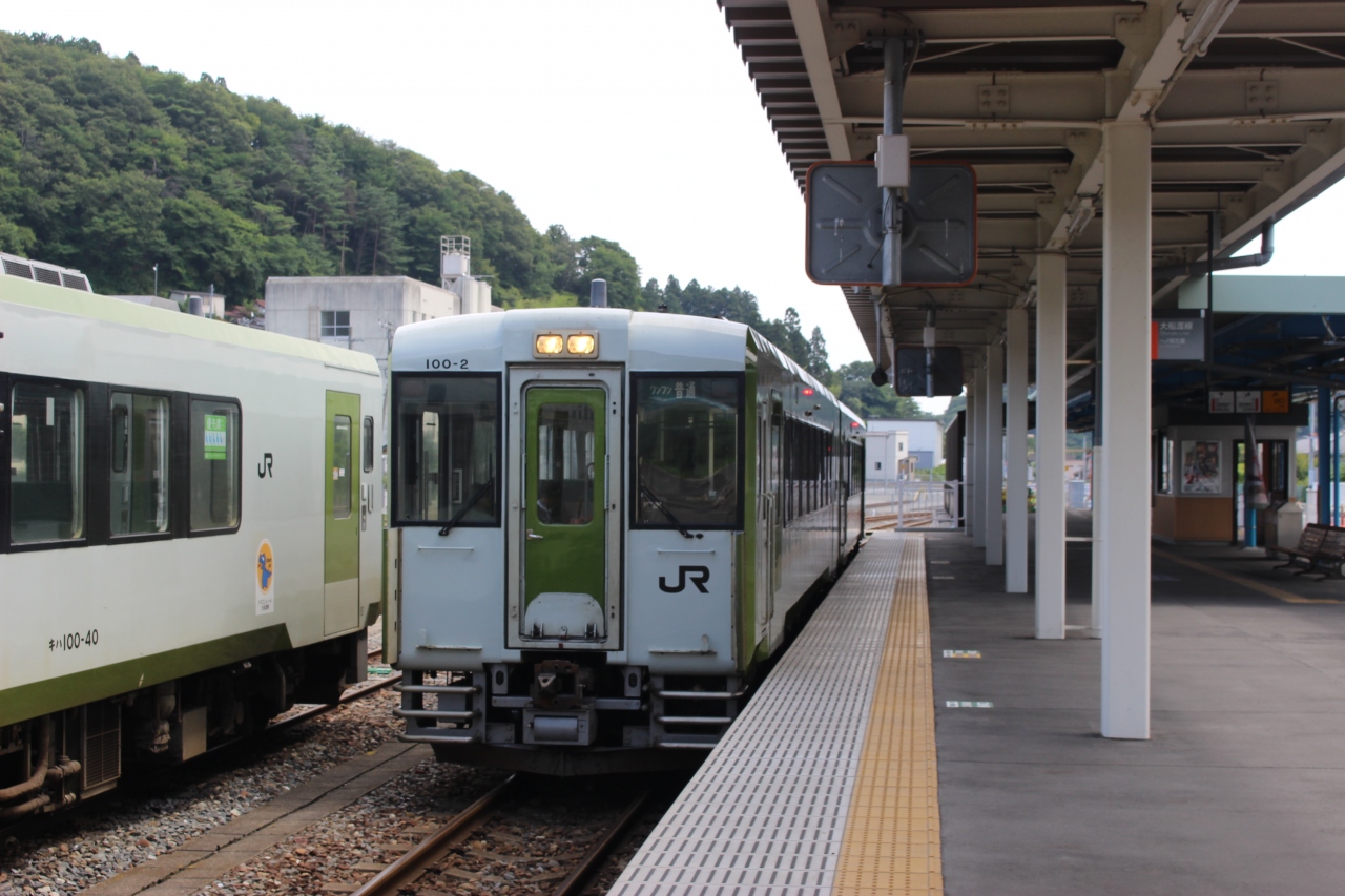 ただ、東日本大震災で被災して、途中の気仙沼駅からはバスになっています(BRT)。