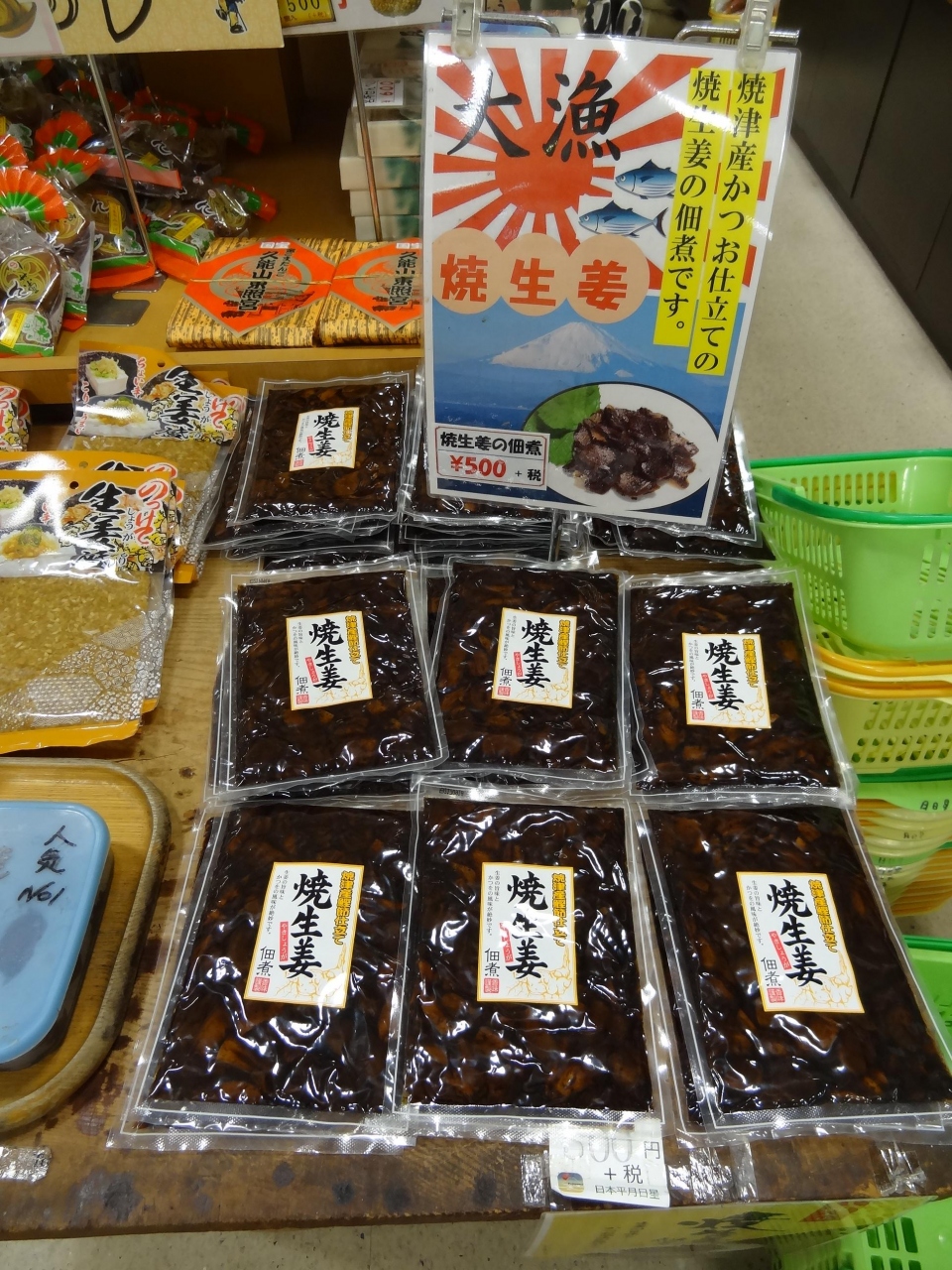 富士山観光を終えて名古屋へ向かう途中、日本平へ行こうと思いつきました。雨降りだったので、景色はまず見られないと思っていたら予想的中。カーブの続く上り坂をてっぺんまで行くと無料の駐車場があります。50台くらいは停められそう。団体のバスで来ていた観光客もいて、ロープウェイでさらに上に行くのでしょう。駐車場ではガスっていて周囲の景色は全く見られずじまい。やむなく、食事もできるお土産店に入りました。試食の多いのにはビックリ!あらゆる種類の試食をすべて終えてから、お土産はどれがいいか探しました。あれこれ迷った末に、ワサビ漬けと富士山のストラップを購入。いいお土産になりました。