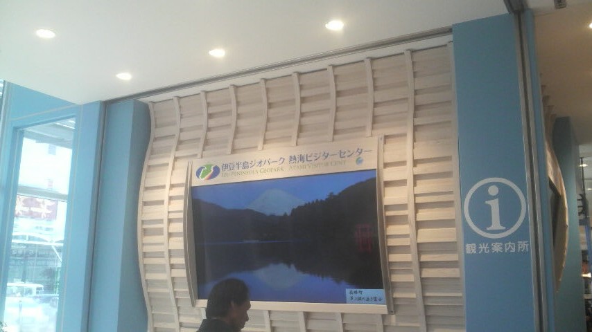 以前来た時は案内所は駅の外の小さなブースでしたが、駅ビル・ラスカができて1階の改札近くの目立つ場所に移転していて、熱海の観光映像を流す大画面モニターがあったりと広々としたつくりにリニューアルされ、使いやすい感じになっていてよかったです。