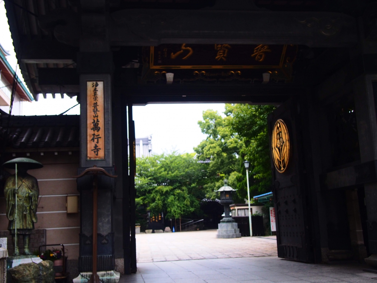 浄土真宗のお寺。櫛田神社の道路を挟んだ向かい側にありました。立派な門に導かれて境内へ。中は結構広く瓦屋根が見事。