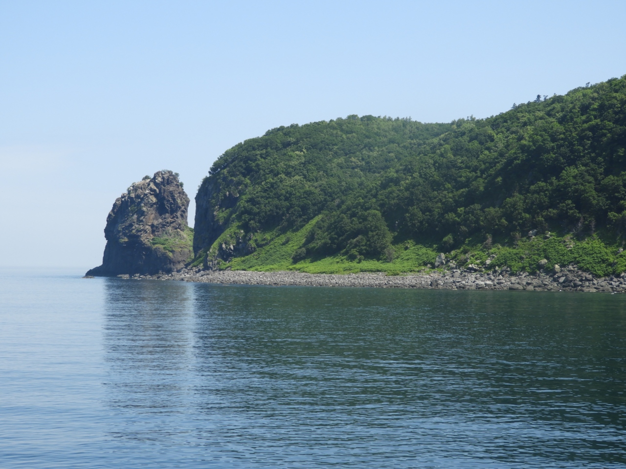 私は、真夏の晴れた日に観光船“おーろら”に乗って、知床岬までクルージングをしました。ウトロ港から出港してから4-5分くらいのところで、この岬の近くを通りました。 “プユニ岬”は、知床観光で最初に見た観光名所でした。この岬は知床八景に選ばれていますが、ここで見る夕陽は美しいとそうです。。