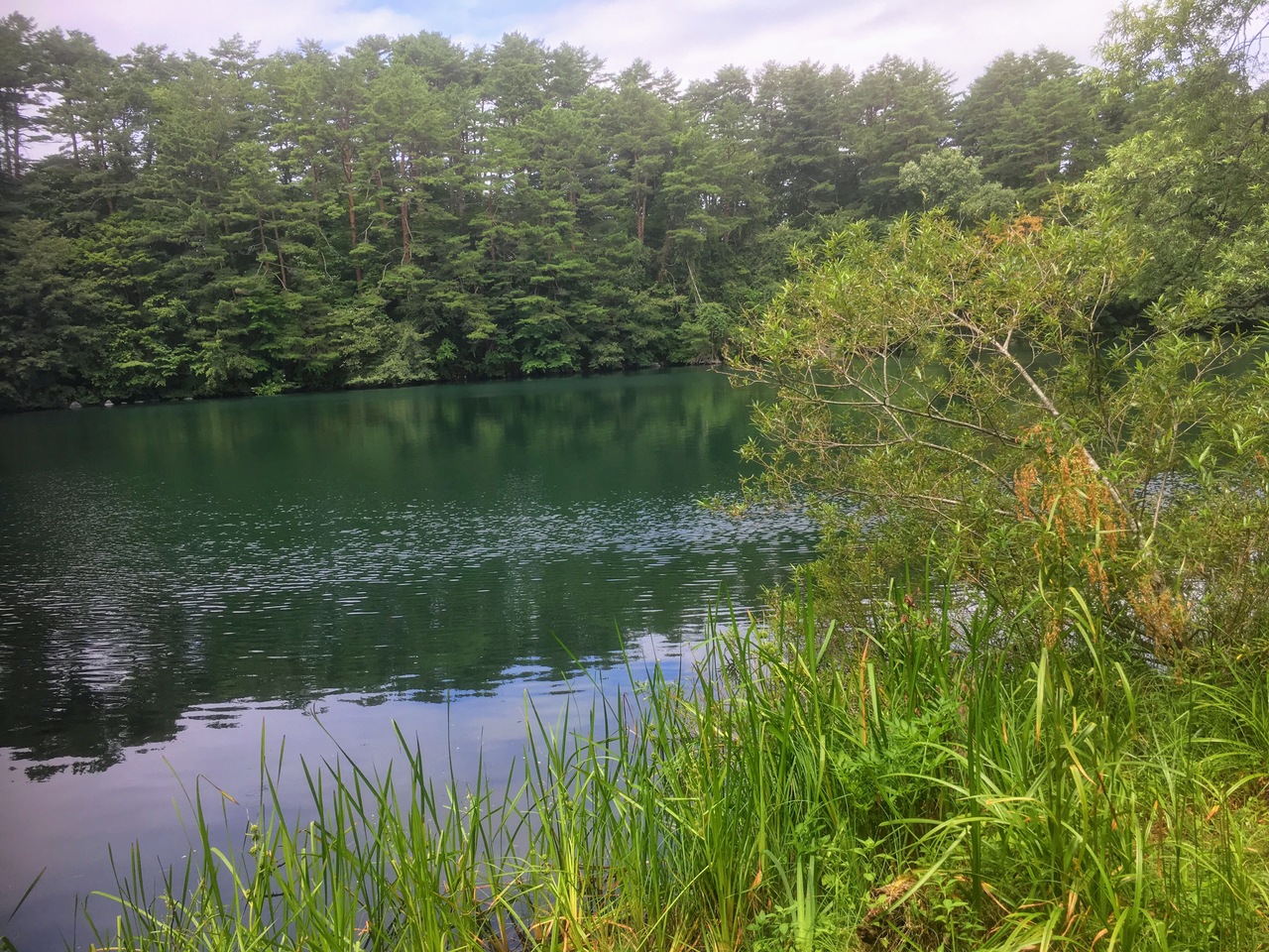 駐車場やお土産屋に隣接しているからか、なんか他の沼に比べると透明感が少なく、水の色も青とかグリーンではなく、普通の池の色といった感じでした。