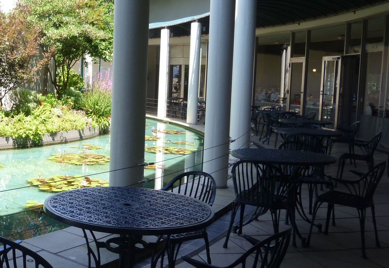 大塚国際美術館にあるカフェ。カフェは、美術館の屋外にあるモネの睡蓮の隣りにあります。もちろん、睡蓮を見ながらくつろげる屋外席を完備。暑くなく天候も良ければ、フランスのジヴェルニーの睡蓮を思い浮かべながら、ゆったりとした時間を過ごすことが出来ます。