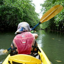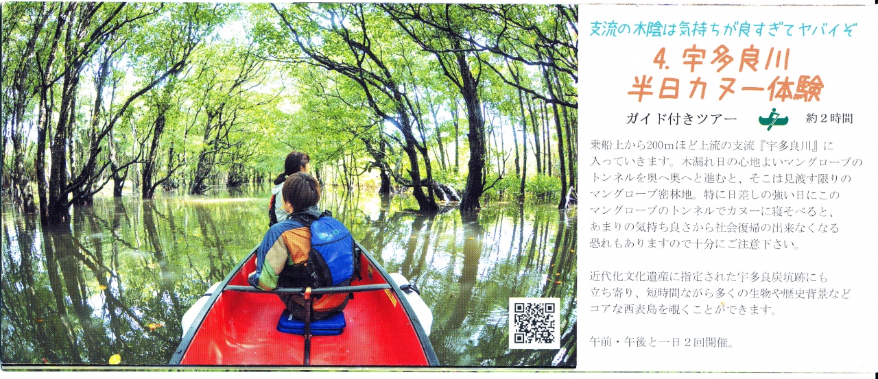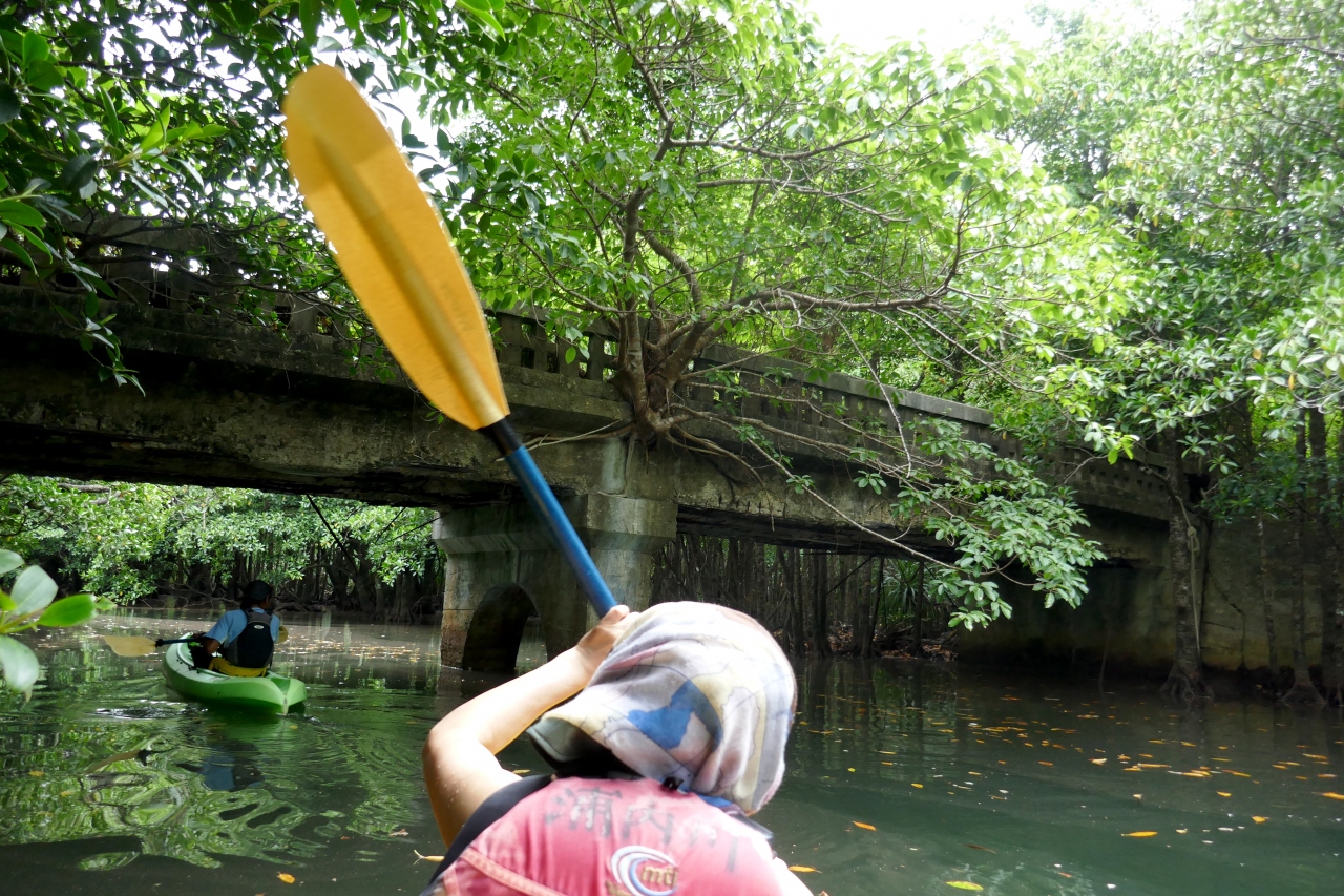 浦内川では絶対カヤック2時間4000円がお勧めだ! 料金も手ごろだ.午前だと0930集合 今回は5人 韓国人2人,フィンランド人1人と日本人2人と国際的.最初はよちよちだったがすぐ慣れたウタラ川の一つ上流の川が,マングローブのトンネルになっていてすごくきれいだし,楽しかった.ウタラ炭鉱跡の橋をくぐり,炭坑跡へ ここで歴史の説明 圧政炭坑であったことを知る 自然と歴史両方知ることができる,ツアーだ