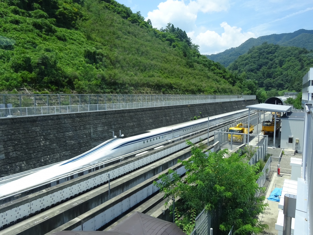 いずれの施設もリニアの試験線沿いに位置し、運転日であればほぼ10分おきに往来する走行車両を間近で見ることが可能。時速500キロで走る物体は本当にあっという間に目の前を過ぎ去ってしまいます。