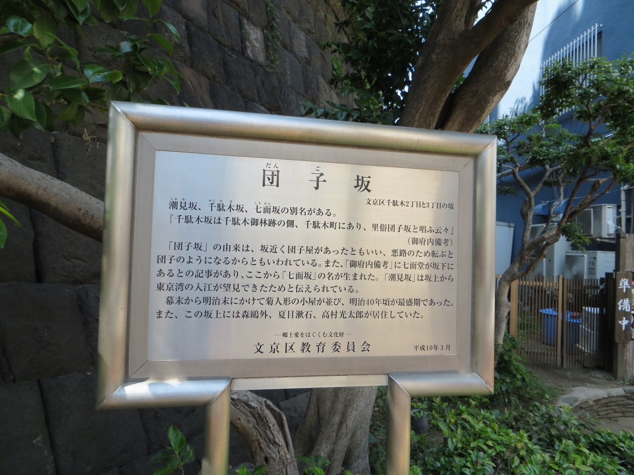 夏目漱石の小説「猫」の中に出てくる団子屋さんが この坂の下にあったから この名がついたと言われています。
