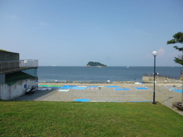 京急のどこの駅からも中途半端な距離の公園ですが、海のそばなので仕方ありません。この日は横須賀開国花火の日で多くの人が場所取りです。