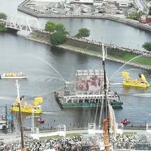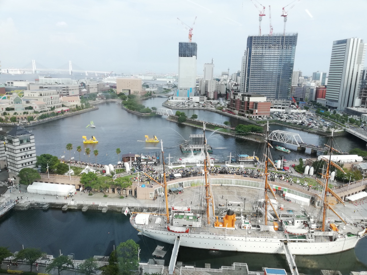 暑いのでわざわざ外で見学したくない人は、ランドマークプラザやクイーンズスクエアでも色々やっています。
