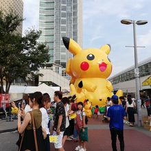 桜木町駅出た所にドカ~ンと大きなピカチュウがいます。