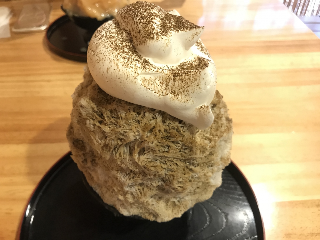 整理券が11時15分から配られます。11時30分開始から入店したかったので10時から並びましたが2番目でした。ミルクティーの上のクリームの甘さがかき氷とマッチしていて美味しいです。季節限定の果肉入り白桃もフルーティーでこの値段でこのクオリティはすごい。