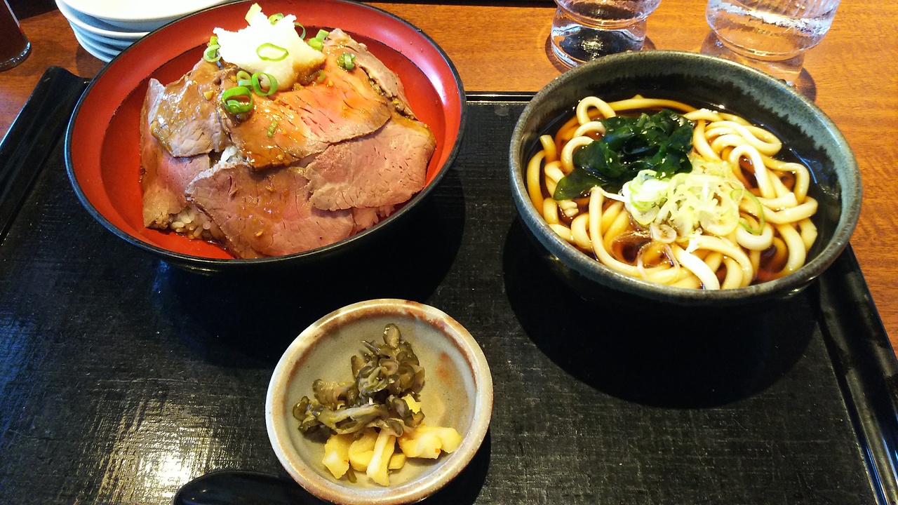 おうどんはちょっと濃いめ。赤だしのお味噌汁は好みのお味でした。