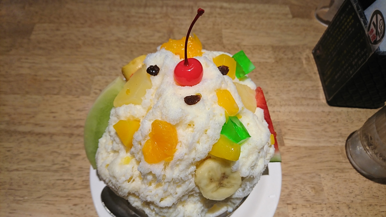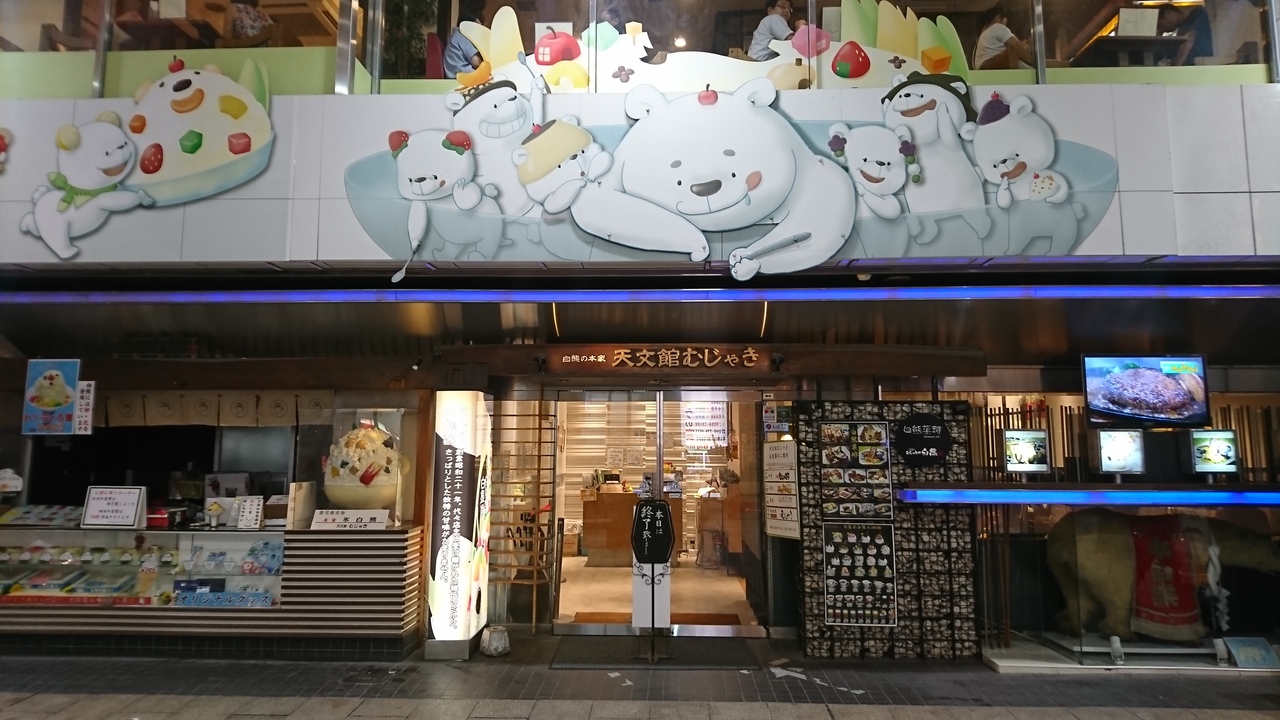 天文館通を歩くこと数分。4階建てのビル。どこのフロアでも「白熊」は食べられますが、白熊だけだと1階のお店が落ち着く。頼むとすぐに白熊がやって来る。以前にはなかった「上から見ると白熊の顔になっている」との解説があった。滑らかな氷は口のなかで甘く溶けて美味。一瞬、夏の暑さを忘れさせてくれます。夏の直は、昼間、行列は必至。狙い目は夜21時頃で、待ち時間はありませんでした。