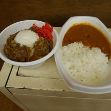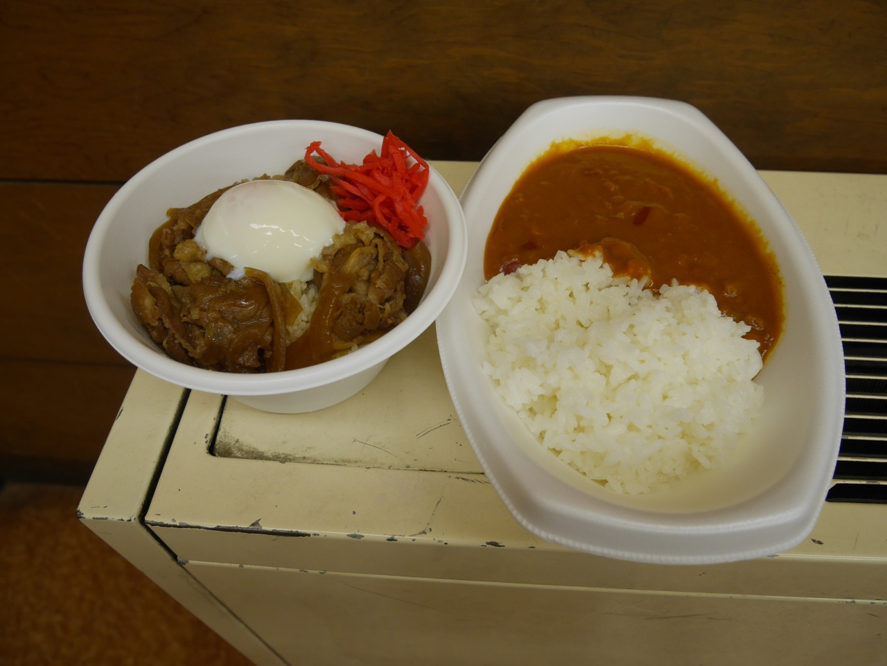 カレーと牛丼をいただきましたが、どちらもレトルトでした。