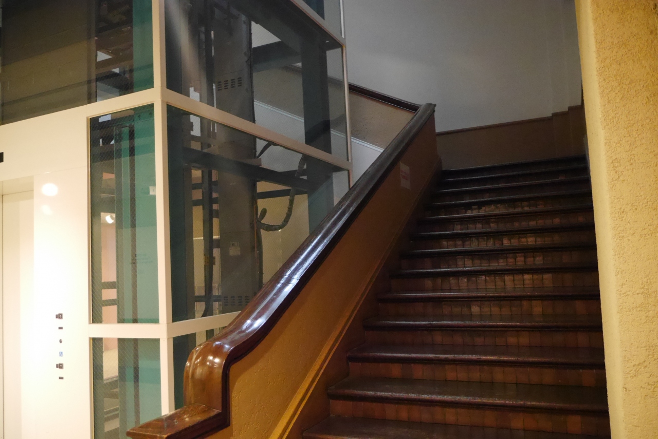 北海道大学の中央通り沿いにあり、旧理学部校舎を博物館にして一般にも無料開放されています。レンガ造りの重厚な建物で、中の階段も趣があります。階段横にはエレベーターも設置され、見学者への配慮が窺えました。