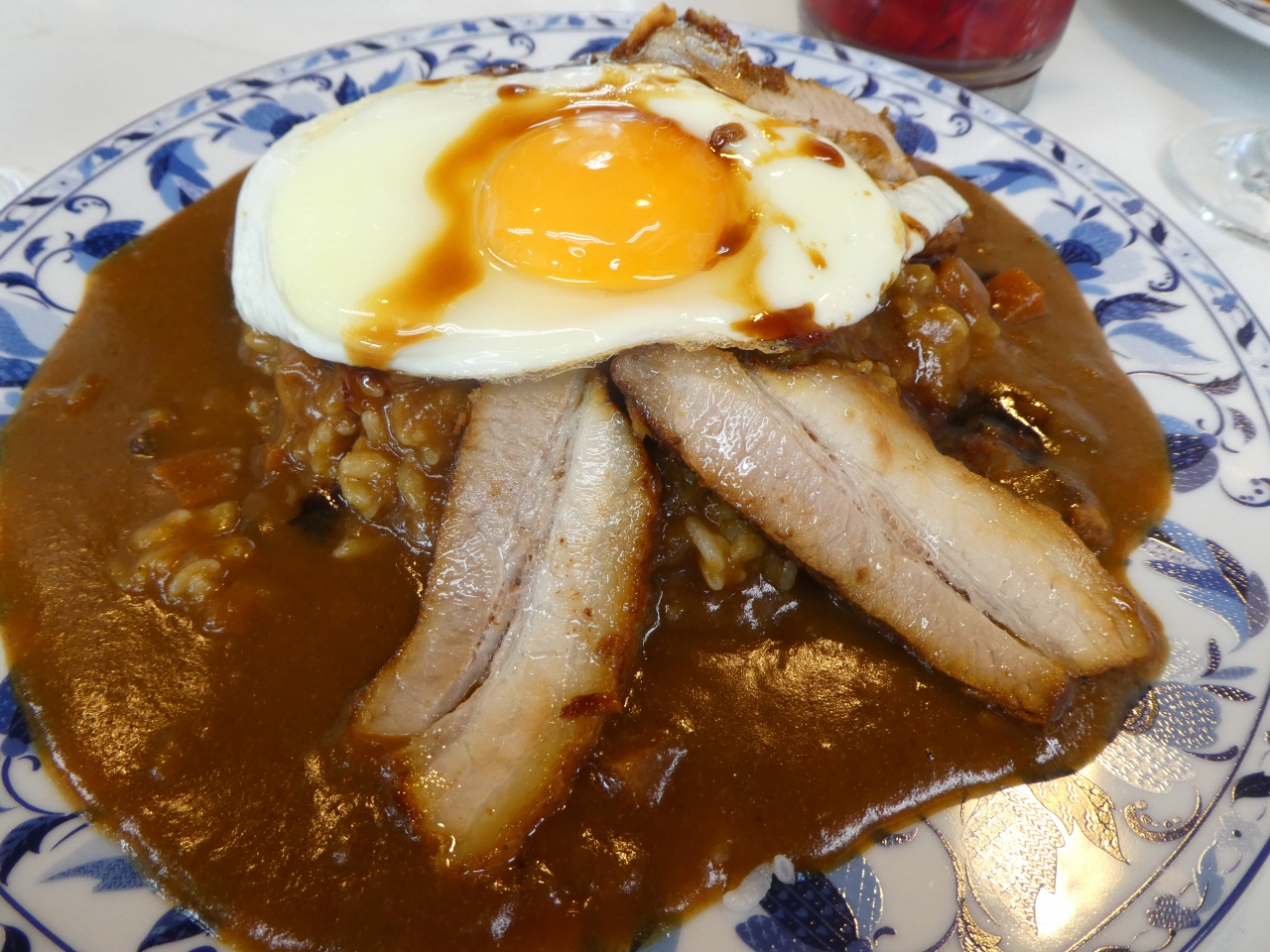 松山駅前にあるカレースタンド。カウンターのみのお店です。この時は焼豚玉子カレーを注文。今治グルメをカレーにした感じのメニューです。チャーシューが柔らかくてスパイシーなカレーに負けていません。目玉焼きもいいアクセントでとても美味しかったです。