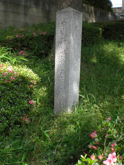 与謝野鉄幹晶子居住跡は、東京薬科大の北側の芝生の盛土土手の中間付近にあります。