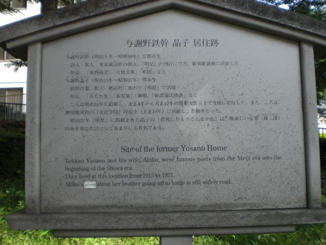 与謝野鉄幹晶子居住跡を訪れ、とても良かったです。