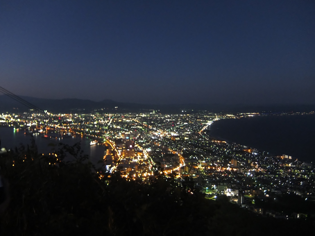 函館駅からバスで登った。函館バスは一日券が利用でき、ロープーウェイよりお得。まだ明るい時間から暗くなるまで景色の移り変わりをじっくりと楽しんだ。難点は人が多く、一番前にたどり着かないとなかなかキレイに見れない。また、真夏なのに山頂は風も強いので、ノースリーブはきつかった。