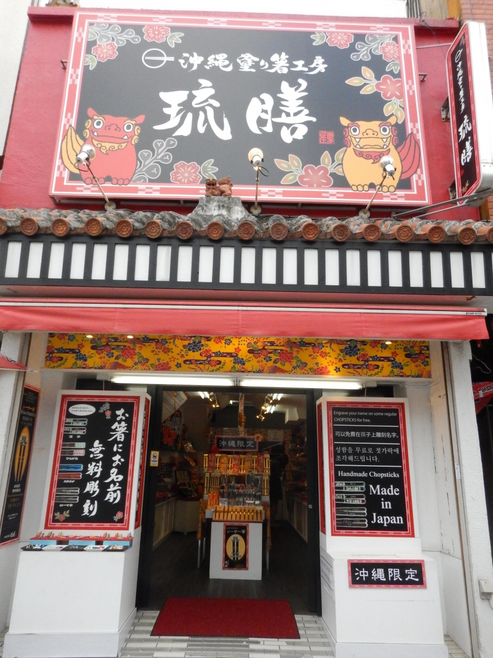 いつもは牧志駅から第一牧志公設市場当たりまでしか歩くことがないが、今回は珍しく県庁近くに泊まったので、いつもとは逆方向に歩いてみた。土産物屋が並び、特に泡盛を売る店が目に付いた。私自身は泡盛は飲まないので、特に買うこともなかった。沖縄の土産に買ったにのは箸だった。