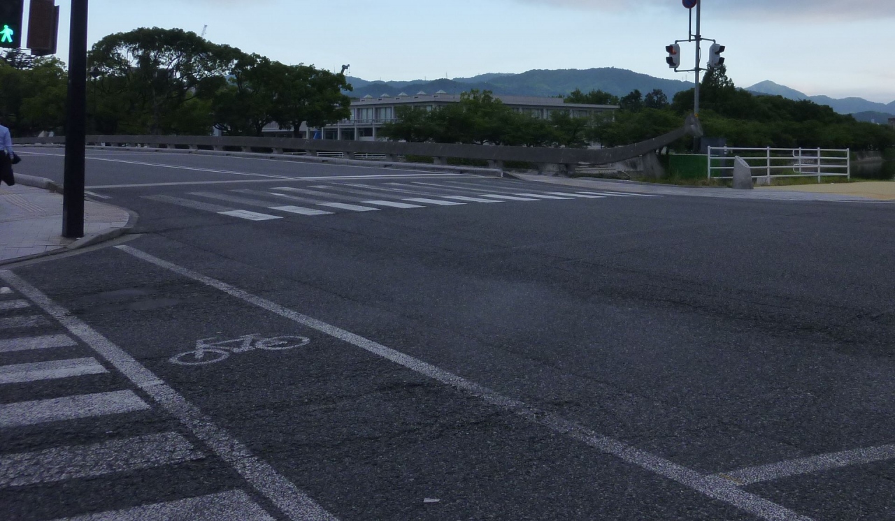 広島市の中心部を東西に100メートルの幅でつなぐ大通り。メインの道路と側道で構成されており、南北交差する道路は、大きな通りで無ければ信号無しで渡れます。ただ、通勤時間は自転車が多く、車で側道を走るのは大変です。