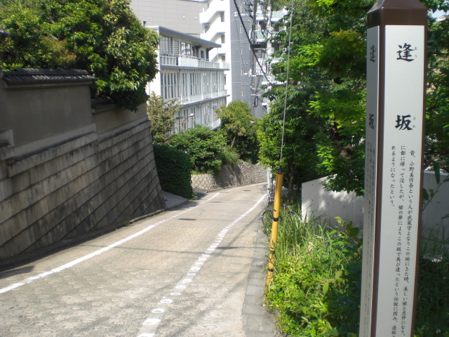 逢坂は、市谷船河原町にある、勾配の急な坂で、思いあう者が逢う願いの坂を言います。