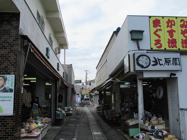 京急三崎口駅から城ヶ島までは京急バスも通っており、終点の城ヶ島バス停近くから始まる灯台通りは狭い路地の両側に土産物店や飲食店が並んでいて島らしい情緒を味わえる好きな通りです。