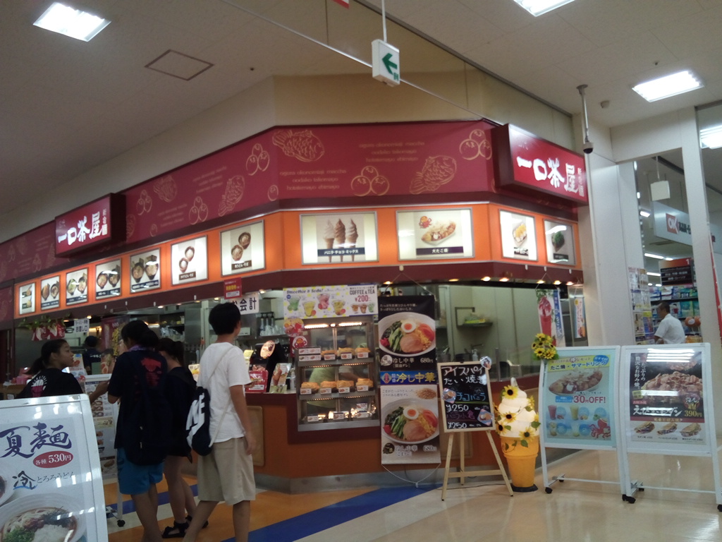 一口茶屋といえばたい焼きのイメージが強かったのですが、ここではたこ焼きやラーメンなどの麺類もあり軽い食事もできるようになっていました。