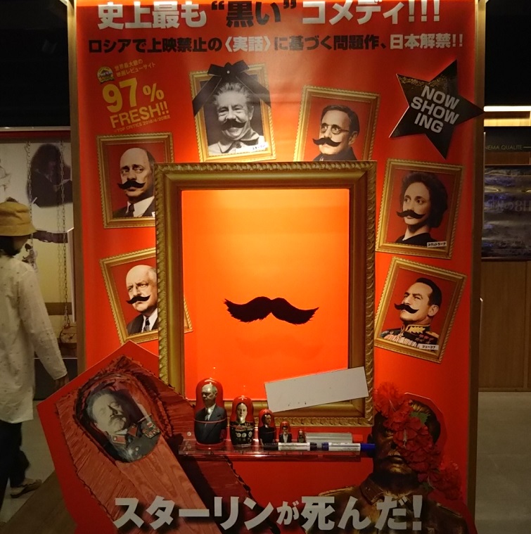 特筆すべきは、狭いロビーにある展示で、通常見かける映画評論の切り抜き展示など以外に、作品に関係したディスプレーをしている。ここは社長も相当に変わり者だが、宣伝担当者も相当に凝る人だ。