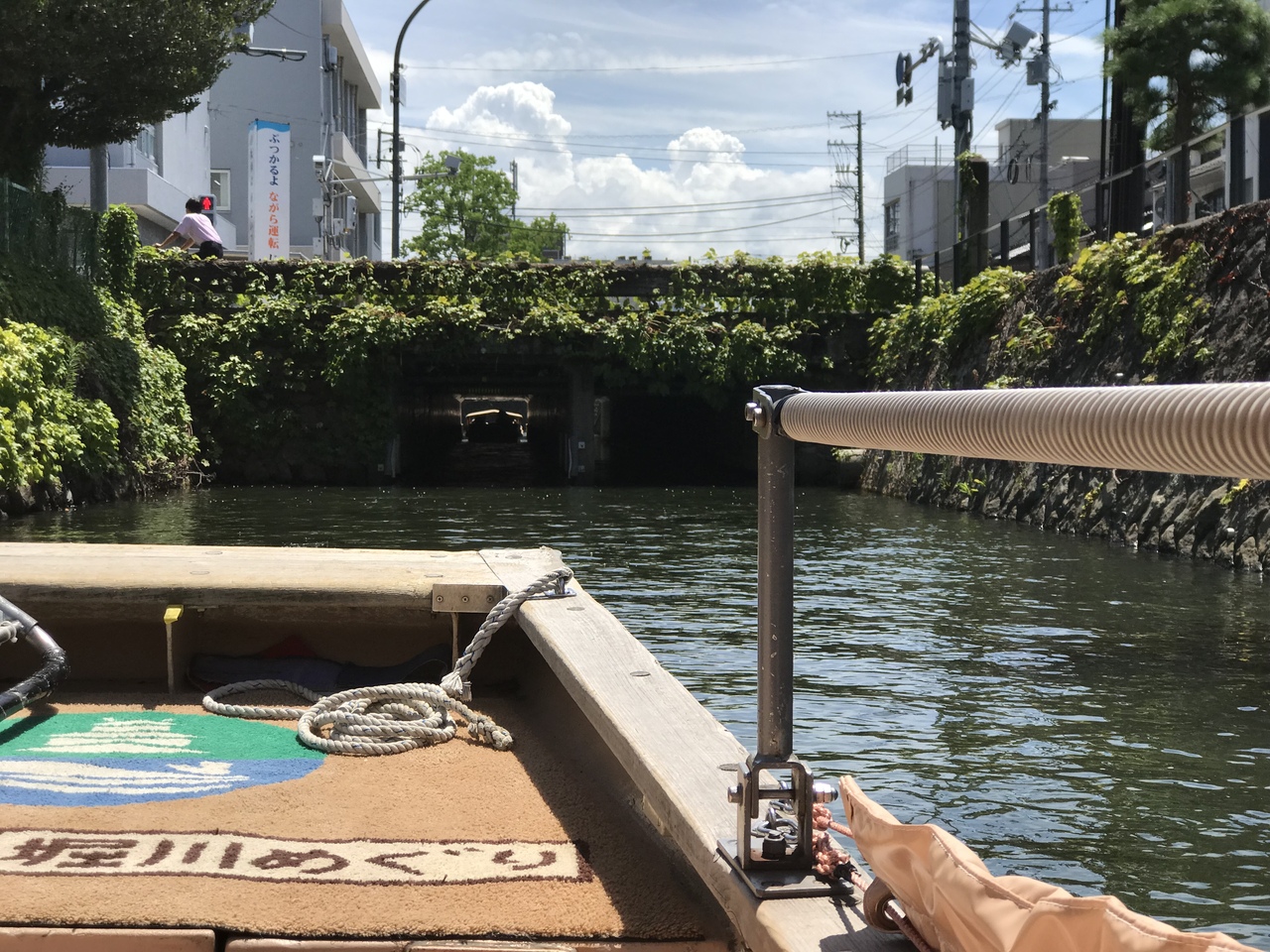 34度の猛暑の日でしたが、乗船しました。一艇7人でゆったり乗れ、靴を脱いで畳の腕でおもいおもいの格好で観光します。風鈴の音が響き、風が当たるので思ったより暑さを感じませんでした。船頭さんの落ち着いたガイドはわかりやすく、押し付けがましくない心地よいものでした。橋の下で聞く船頭さんの歌は、天然のエコーがかかり、素晴らしかったです。松江の中心にある松江城をぐるりの回る遊覧船に乗り、落ち着いた佇まいの歴史ある街だと改めて感じました。