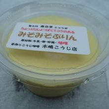 味噌をベースとしたプリンがあるというので伺ってみました。みそみそぷりん1個150円。