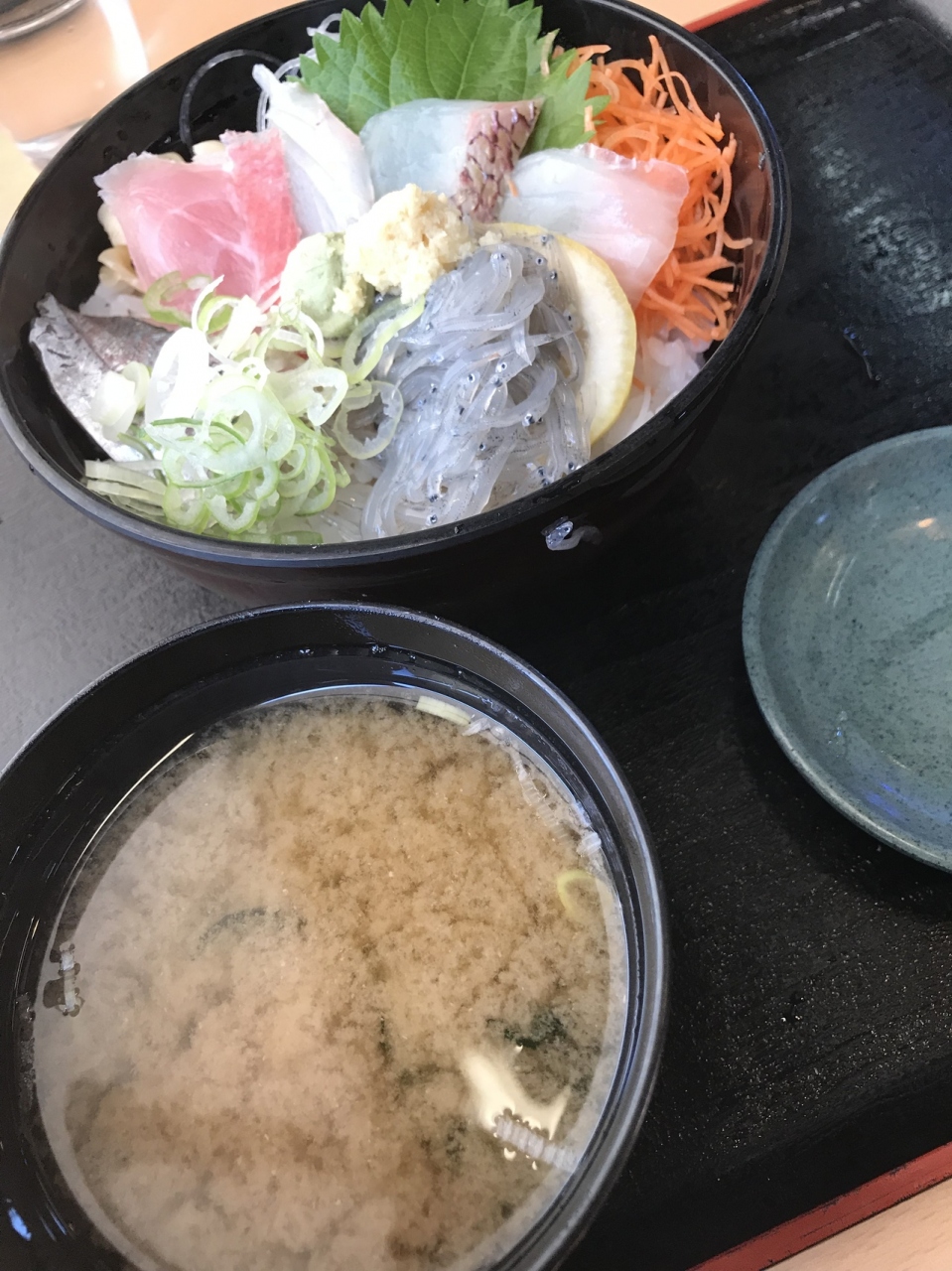 生しらすの入った海鮮丼。なぜか人参の千切りも入ってましたが美味しかったです。