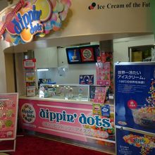 冷やされた粒々のアイス。コロコロして不思議な感じです、受け取ってすぐに口に入れると、口の中にひっつきます。何か変な感じ。今までのアイスクリームの概念が変わります。