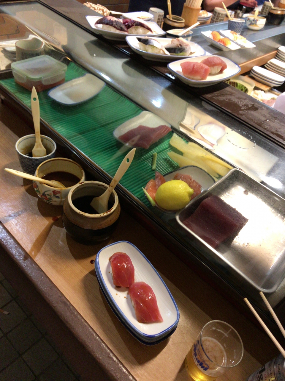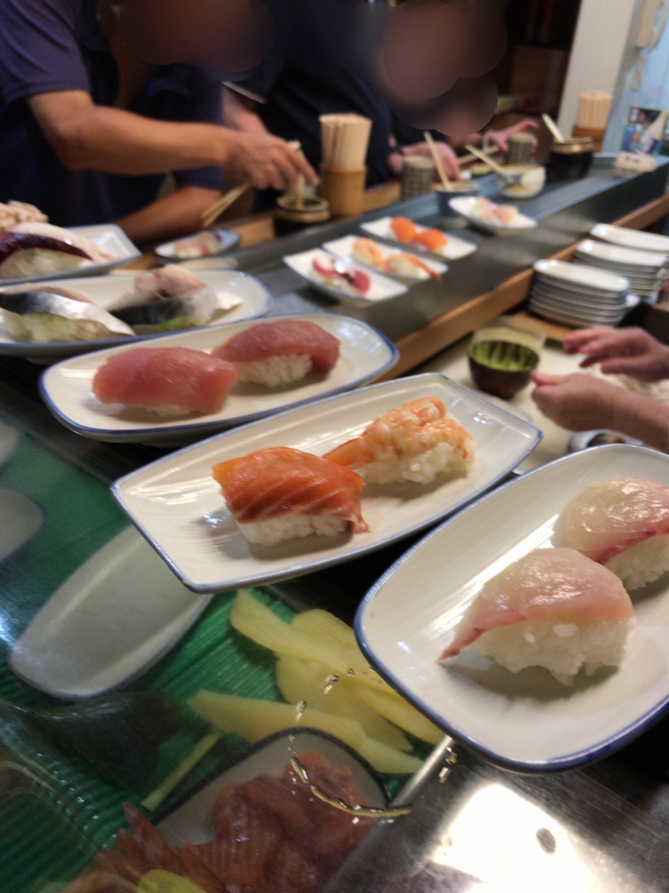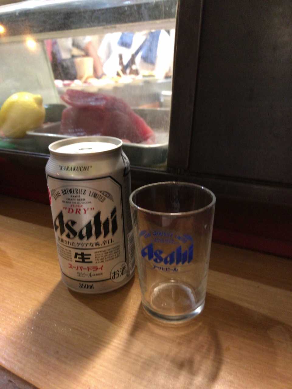 今日、缶ビール、冷酒、寿し三皿、赤だしで1680円!なり