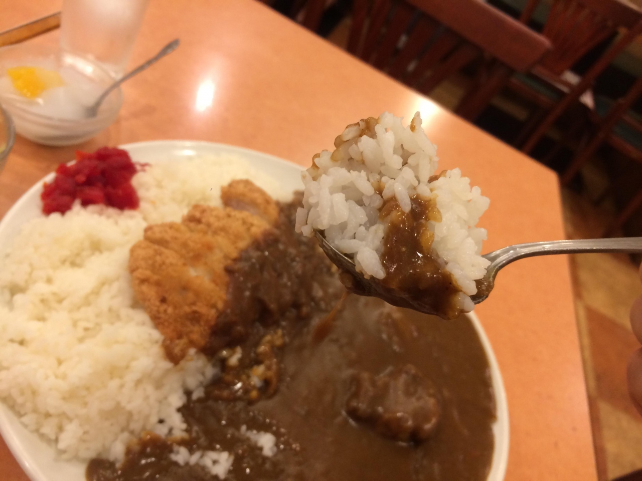 玉ねぎと豚を煮込んだカレーのルーはなるほど中華の香りをしっかり残し奥深くコクがある。