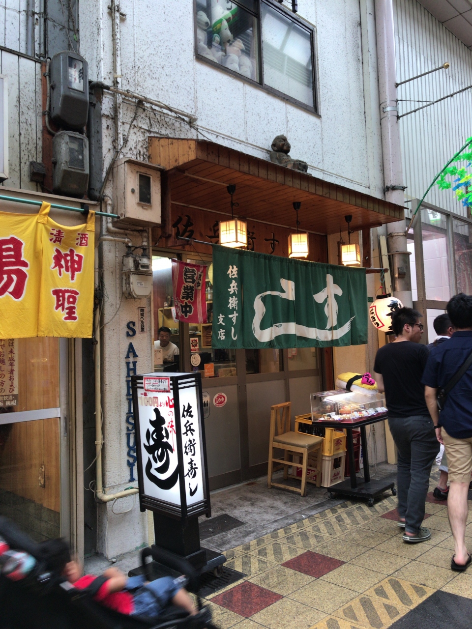 動物園前駅側入口にある佐兵衛寿し本店、あと横丁中程に目立たない支店がある
