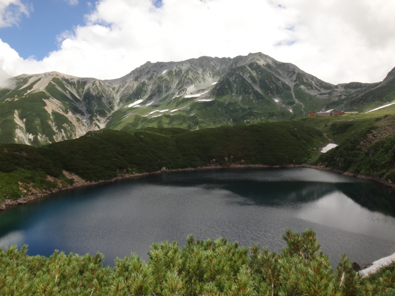 北アルプスで最も美しい火山湖といわれ、周囲約630m、水深は約15m。