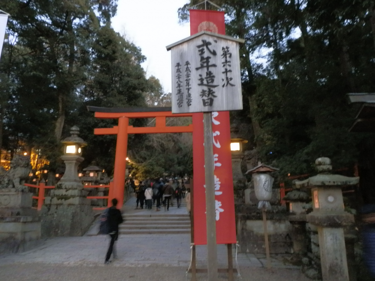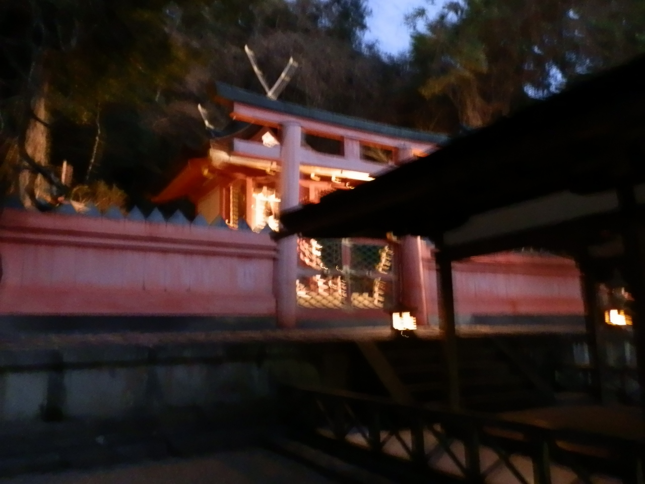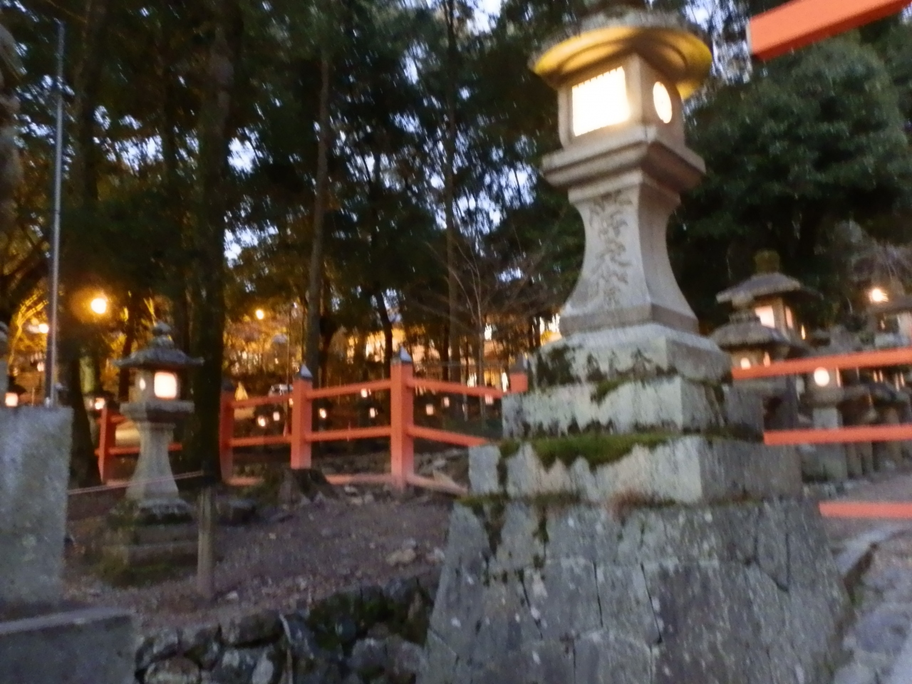 辺りは闇に染まって来た。燈籠の鈍い灯りを頼りに森を歩いた。シーンとして歩く音が響いた。近くで神事を行っているような気がして来る。夜の春日大社も大変魅力的であった。