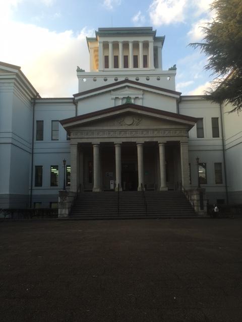 外観はギリシャ神殿風です。これに対して内装は東洋的な木組みが施されています。外観も内観も実に見ごたえのある意匠です。さらに注目すべきは、内側の吹き抜けの構造です。一歩入ったらぜひ見上げてみてください。写真のような息を飲む美しさが待ち構えています。この建造物は、横浜市指定有形文化財に指定されています。