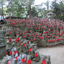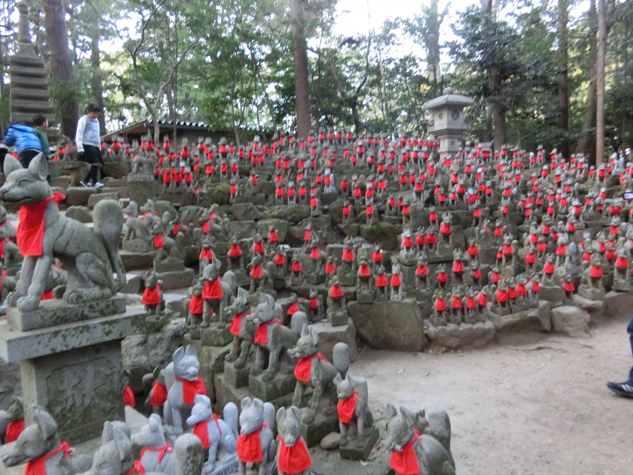 豊川稲荷の一番奥の方にあり、見渡す限りの狐の石像があり圧巻の景色です。
