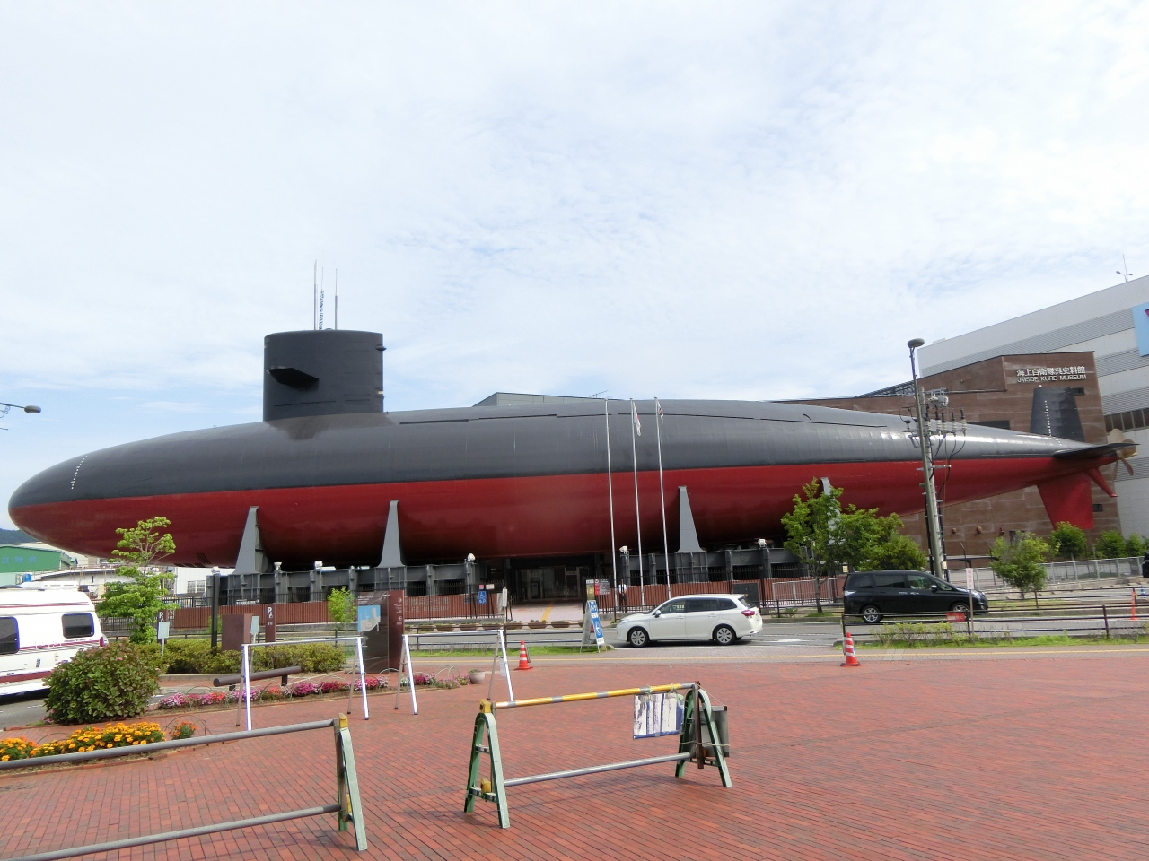 呉駅から連絡橋を渡って5分程、大和ミュージアムの斜め向かいにあるグレーの巨大な潜水艦が目立つ施設です。