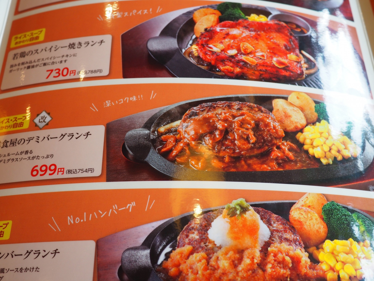 フライングガーデン佐倉店を紹介します。土曜日のランチがお得です。安い物でハンバーグが、730円位です。スープ飲み放題、ライス食べ放題は良いです。名物は爆弾ハンバーグです。こちらは、量も250gと大型です。