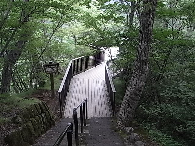 だいぶ歩きやすく変わっているので驚きました。観爆台はウッドデッキになっていてきれい。かなたに霧降滝がみえますが、とても小さい。