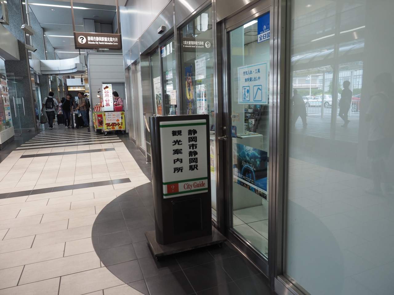 JR静岡駅の南口にある観光案内所です。おみやげものなどを扱っている店の裏側みたいなところにあるのでちょっとわかりにくかったです。無料のパンフレットなどが置いてあるので、まずは簡単な情報を収集するのに便利です。