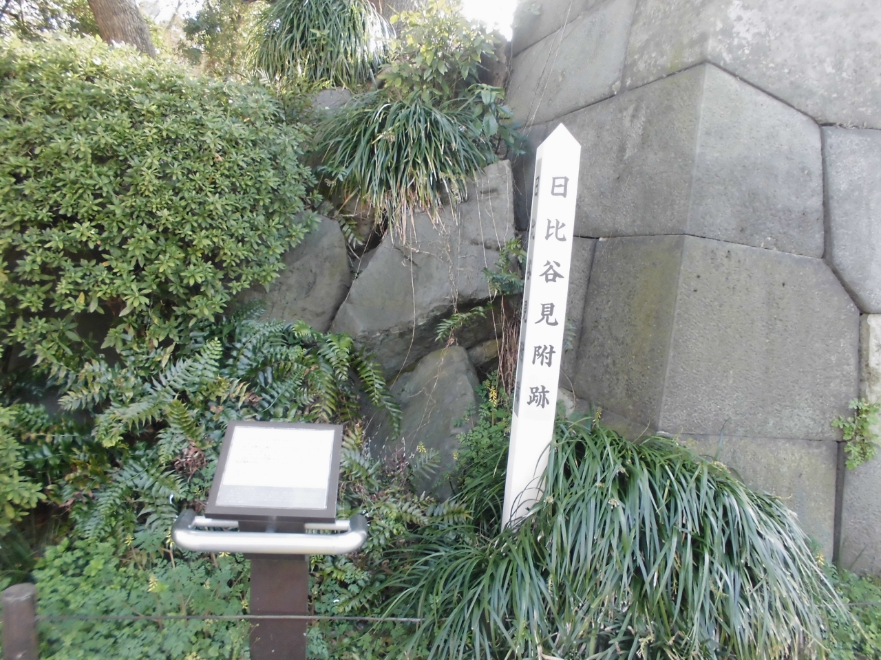 日比谷公園の東京駅に近い一角にあります。江戸城三十六見附と呼ばれるものの1つで、整然と組まれた石垣を見ることができます。そういえば日比谷公園は皇居が近くて皇居を見ることができました。そう考えればここに石垣があってもおかしくはないと思いました。