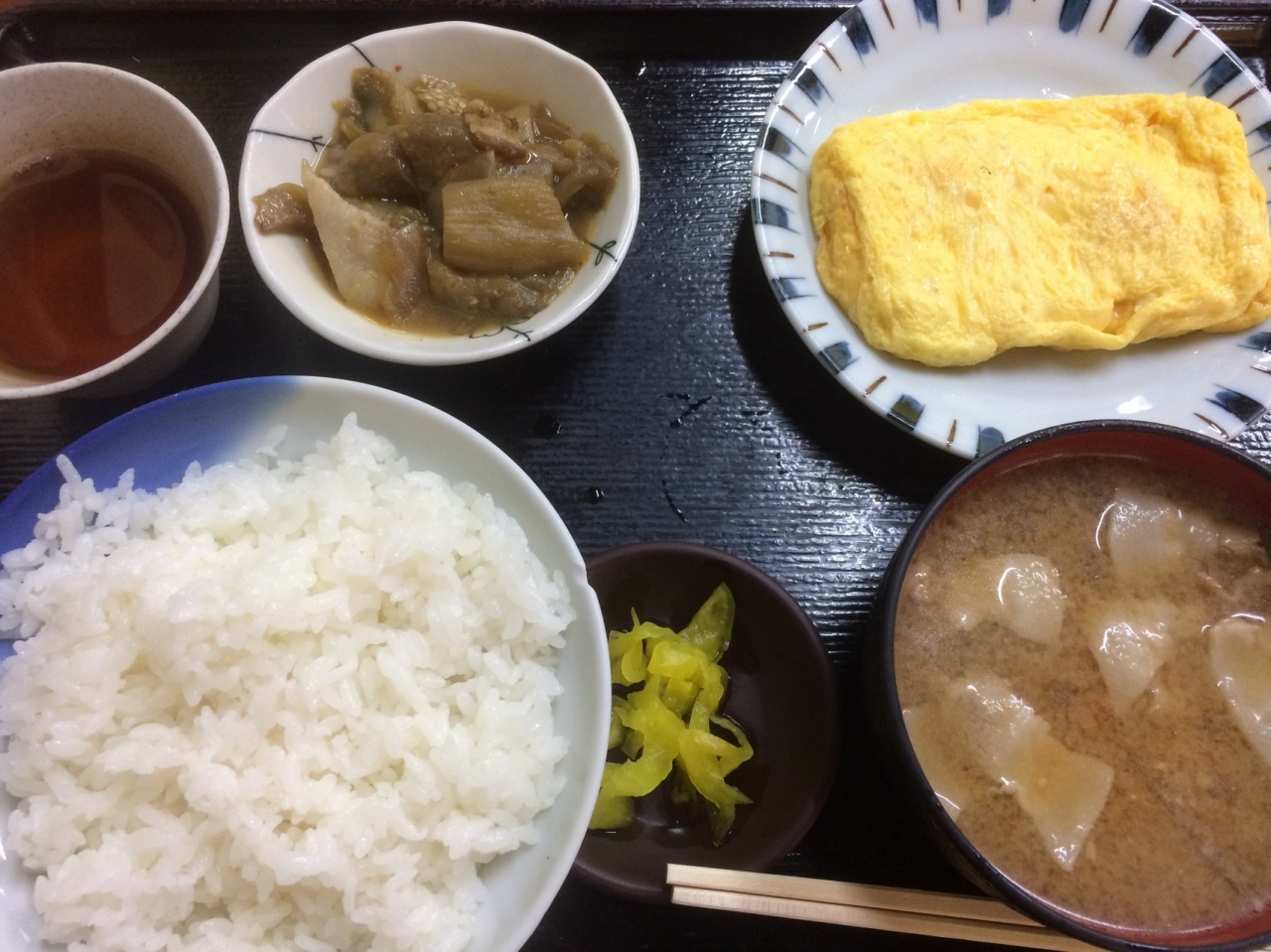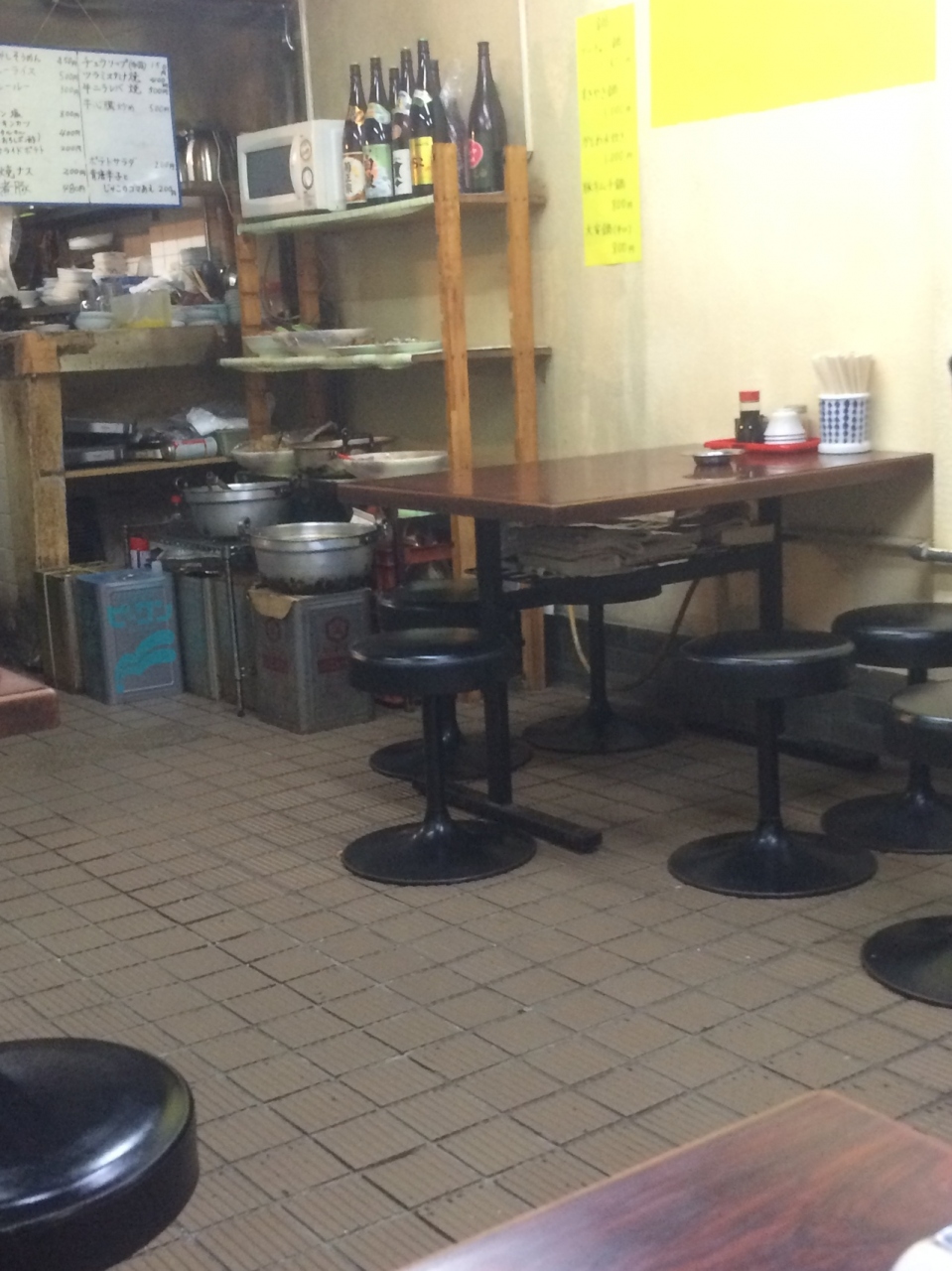 店内5席の古びた店です。早朝5時から営業しています。訪問時は混んでいて朝からビール飲んでいる客も多くいました。豚汁定食を注文、ほかほかの玉子焼と茄子、ネギ、肉が入っている小鉢も付いていました。豚汁も具が多く最後まで温かいまま食べれました。夜は寒い一杯飲み屋となります。料金も格安の店でした。
