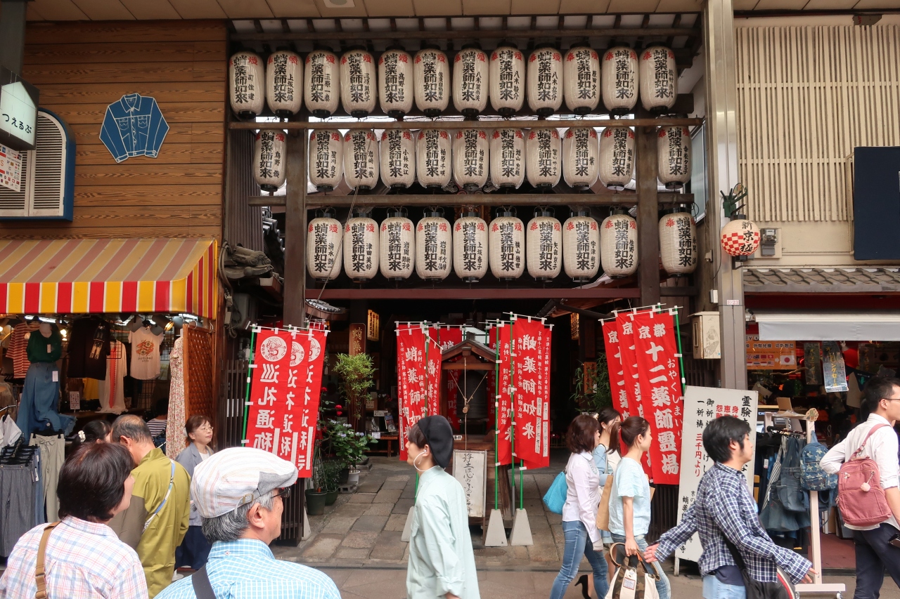 金閣や銀閣が筆頭だが、京都には寺名よりもお堂の方が有名になる例は多い。蛸薬師堂もその一つだ。蛸薬師の通り名はこのお堂に行く参道だったことが由来だという。新京極に多数集められたお寺の中でも、病気平癒というご利益も手伝って参拝客が多いお寺だ。さまざまな人が来るからだろうが、写真撮影を禁じる張り紙があちこちにあったのは気になるところ。